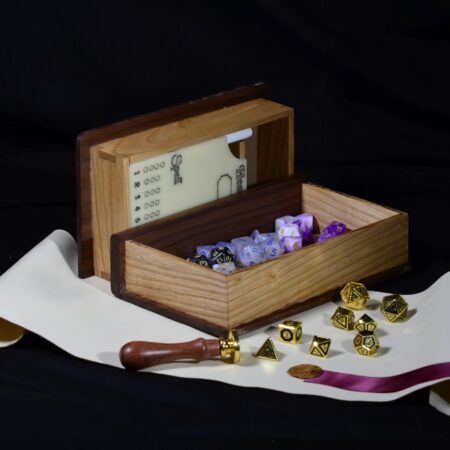 Transform your gaming experience with our exquisite hardwood dice storage and rolling tray – the Chronicler. Disguised as a book, it blends seamlessly into any gaming library.