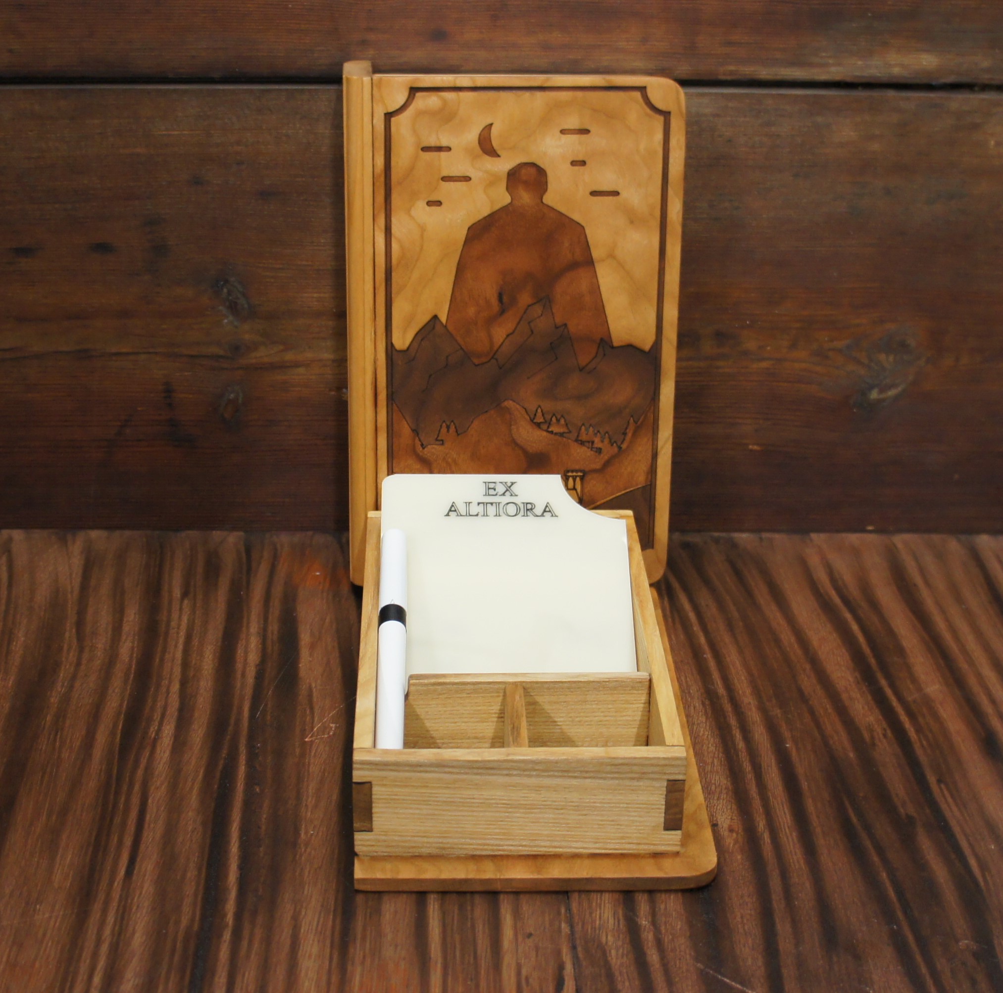 Made of Cherry wood and engraved with our interpretation of the Magnus Archives famous Ex Altiora.