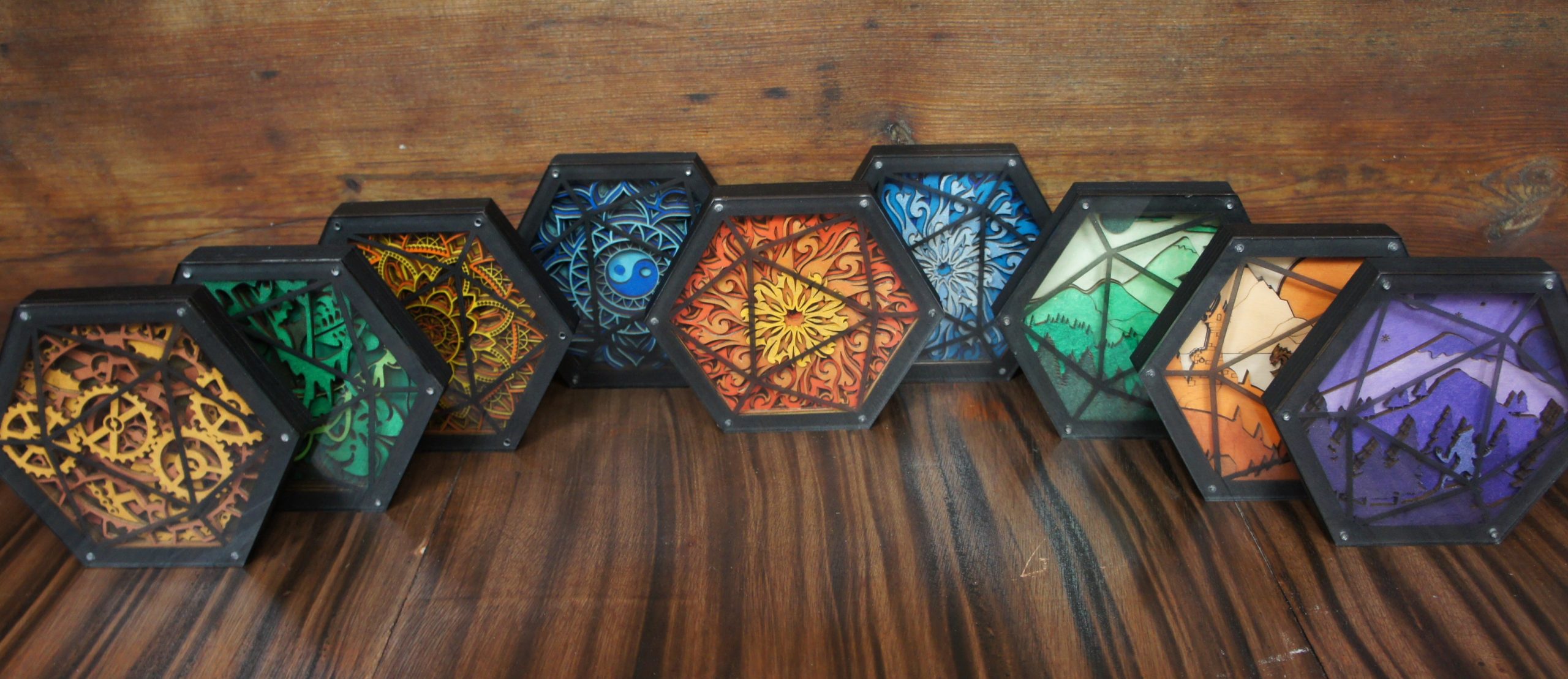 Our fantasy wall art is hand painted and laser cut, making each one a unique piece. Coasters come topped with acrylic to protect the scene and provide a stable base for your drink.