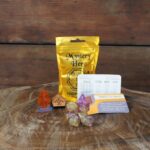 – 1 Full poly dice set (d20, d12, d10, d%, d8, d6, d4)