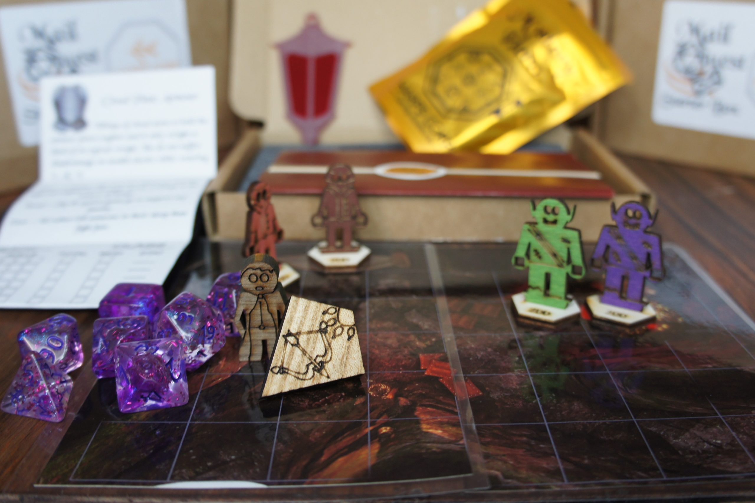 - Two storage boxes to keep minis, tokens, dice and other essentials.