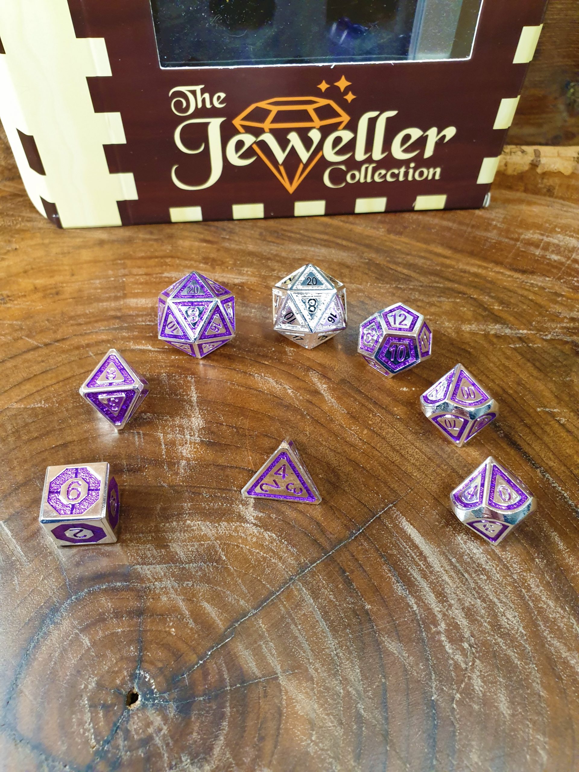 – 1 Full metal poly dice set (d20, d12, d10, d%, d8, d6, d4)