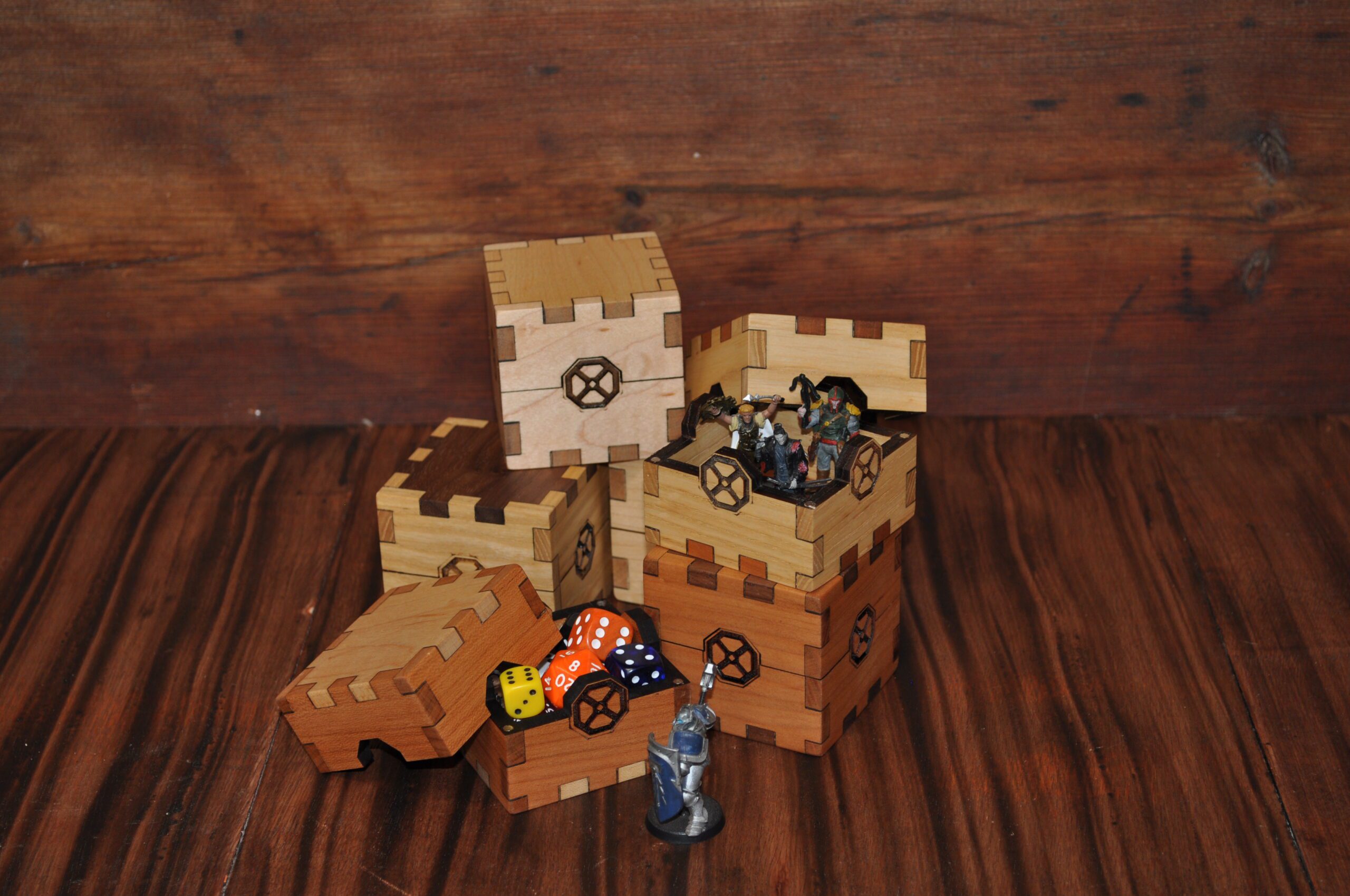Only fine craftsmanship and friction keep this box secure and your cards safe on your travels. You can fit tokens, counters or d20’s in the storage section.