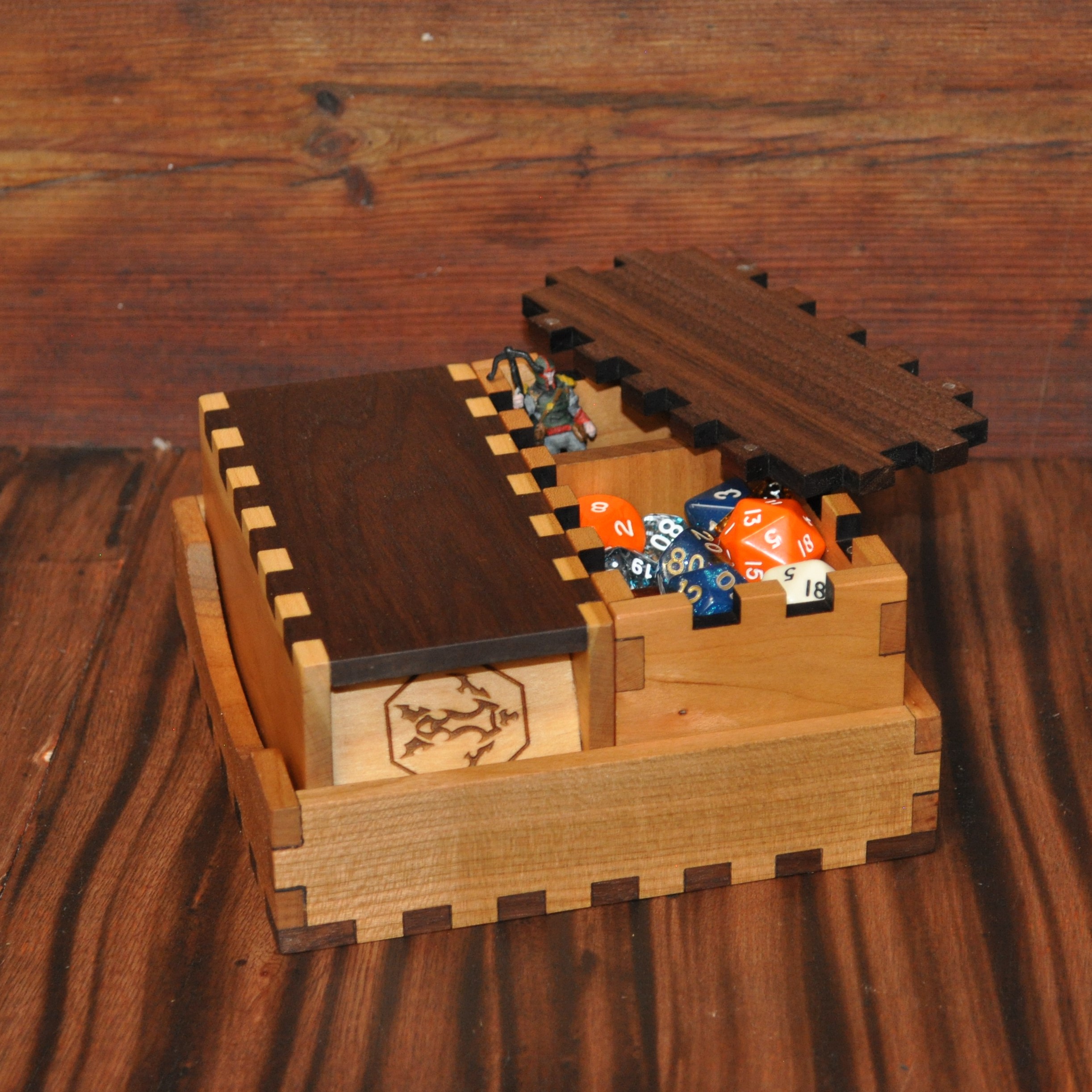Only fine craftsmanship and friction keep this box secure and your cards safe on your travels. You can fit tokens, counters or d20’s in the storage section.