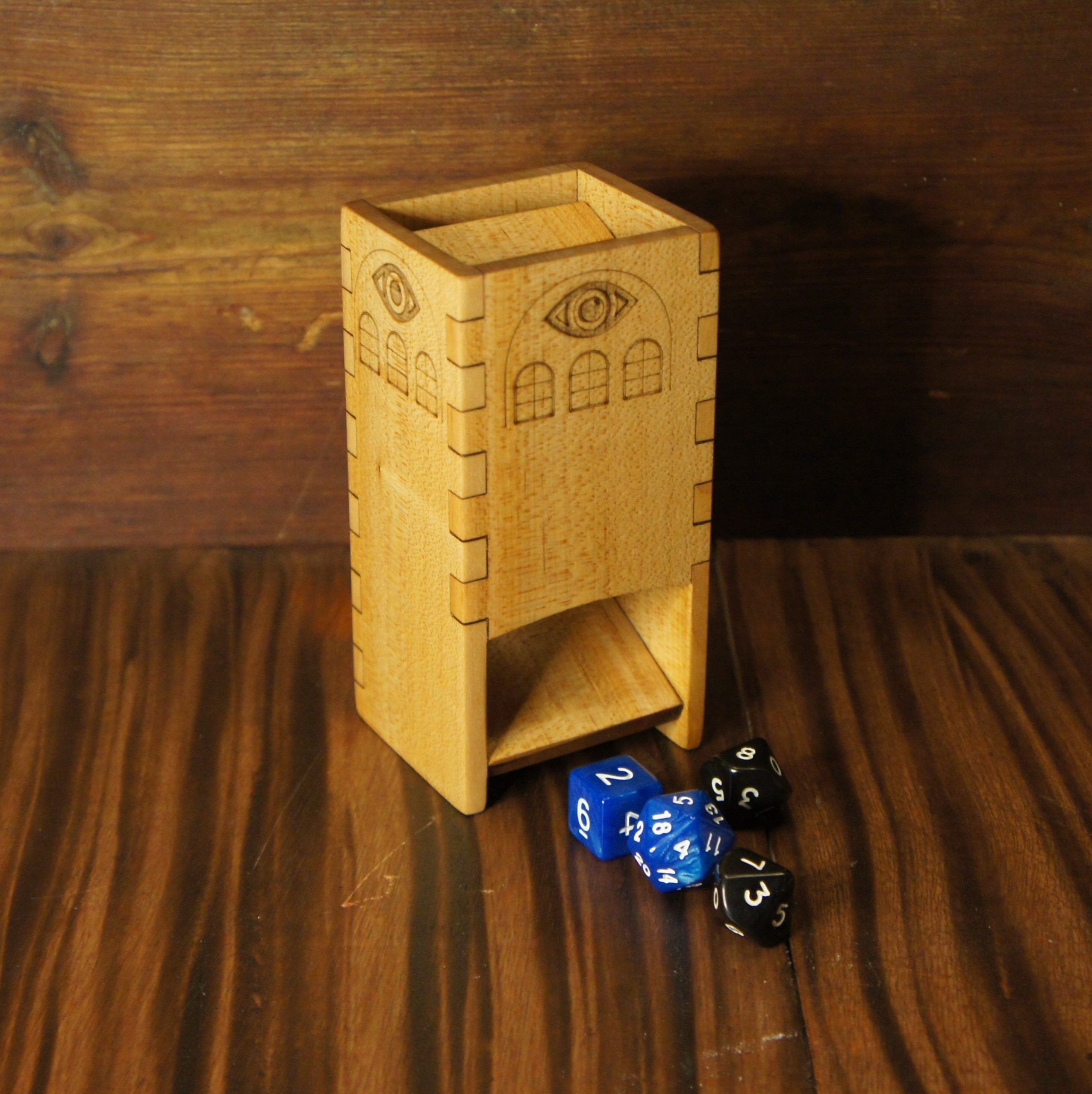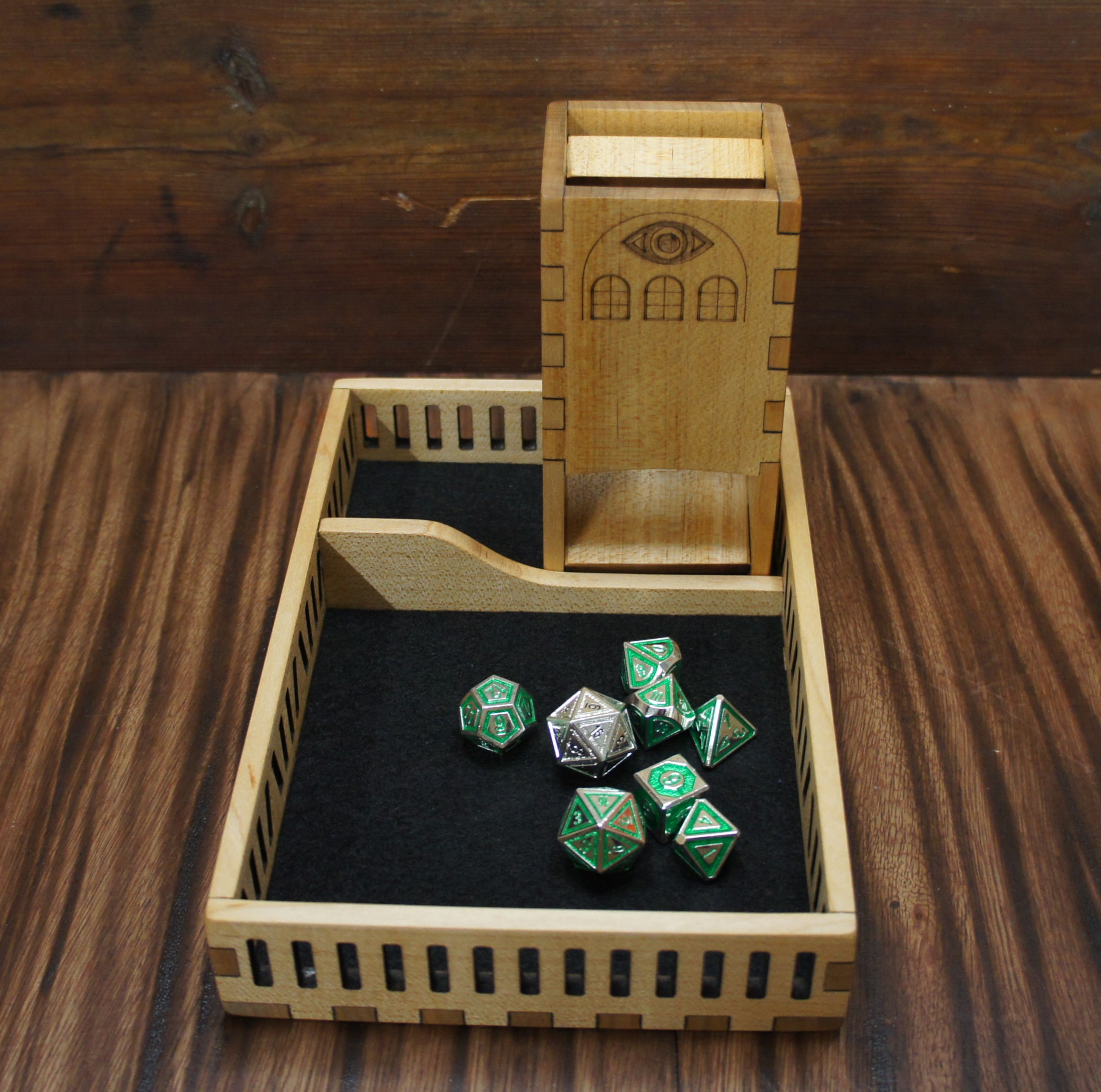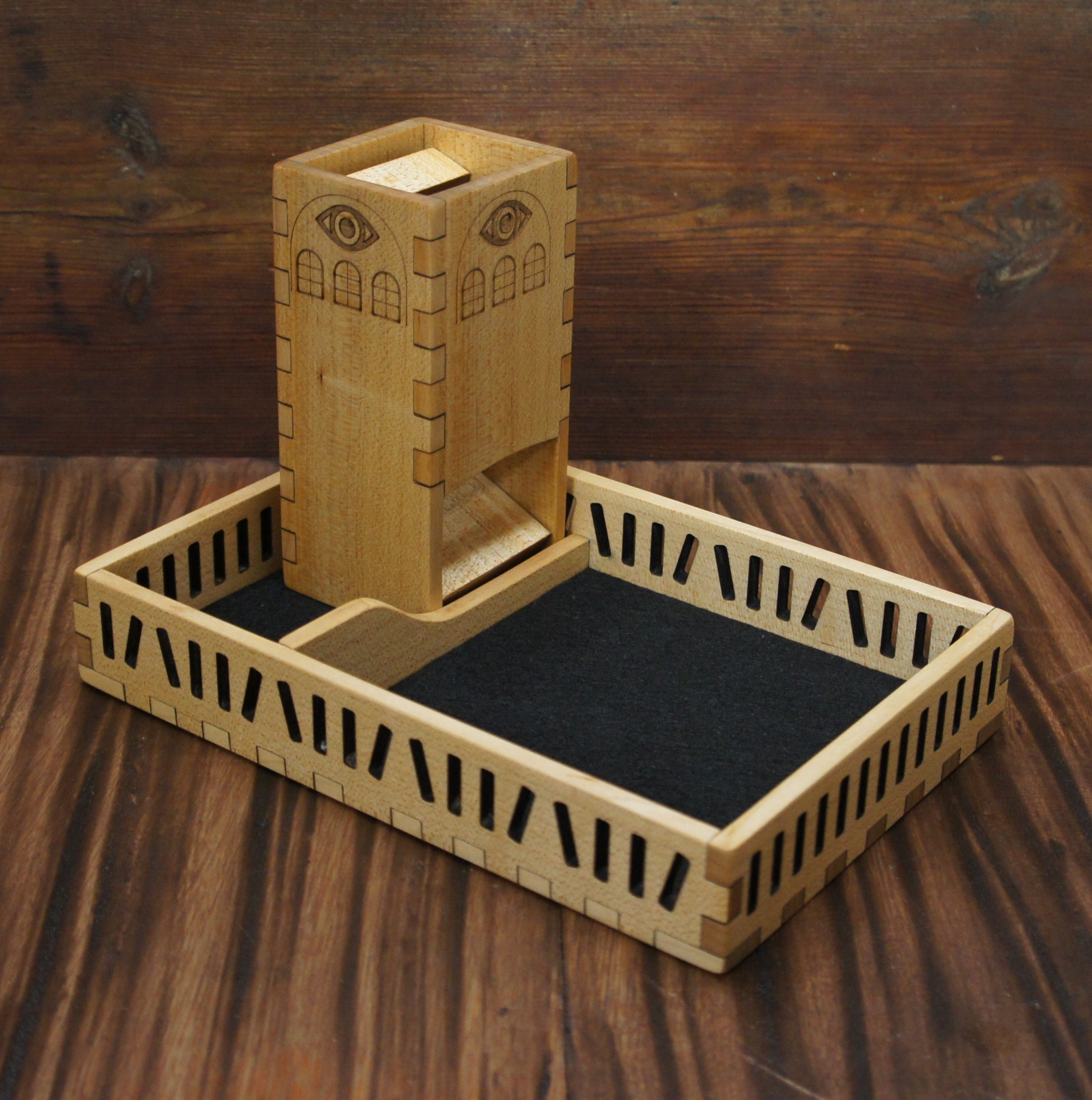Our wooden dice tower and tray, also called a dice roller, is the ultimate accessory for any gamer. Expertly crafted for accuracy and durability, it’s a must-have for tabletop gaming.