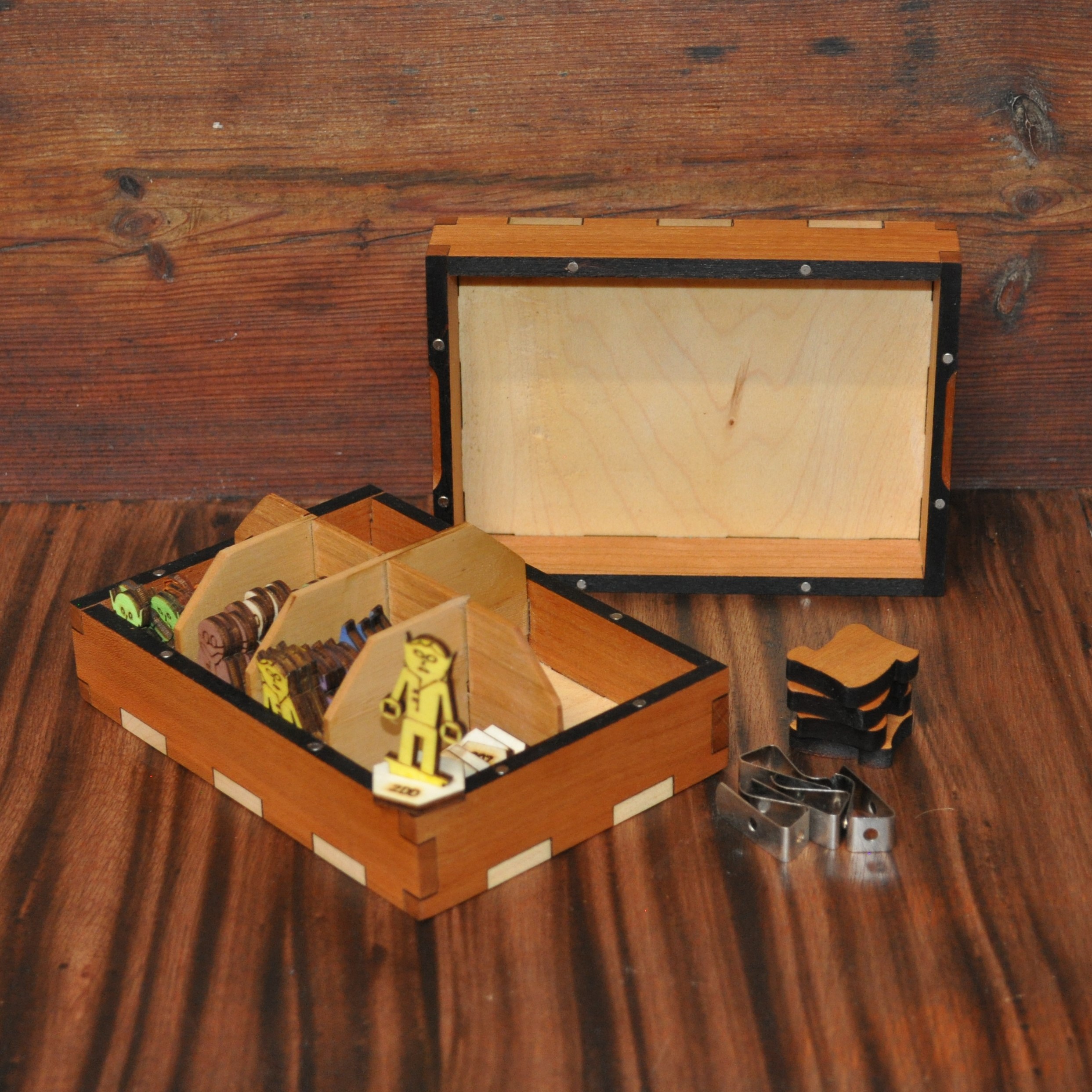 - Two storage boxes to keep minis, tokens, dice and other essentials.